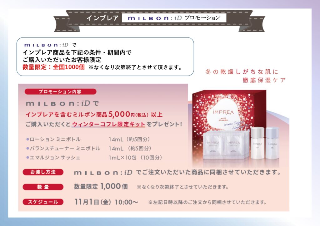 ★また、ECサイト ” milbon : ID ” でのキャンペーンも 11/1 より始まります!
